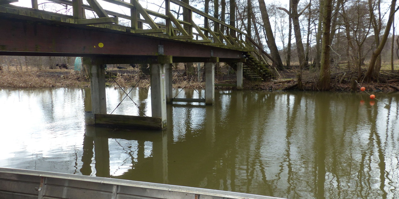 Der vorhandene Überbau aus Holz wird komplett zurückgebaut. Teilweise werden Fundamente rüchgebaut , Rammpfähle bleiben erhalten.